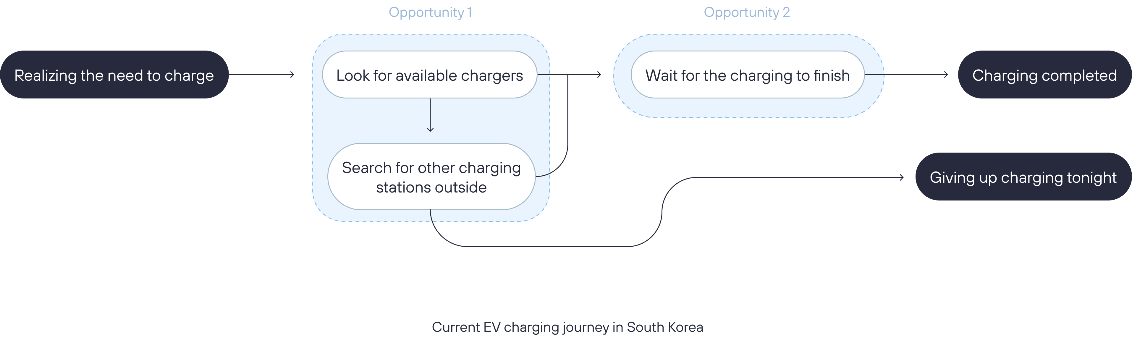 To build an effective MVP, first needed to understand the core value the service could deliver to users and identify the key pain points in the EV charging experience. Through discussions with Aaron’s team and insights from preliminary user research, we identified two key problems that needed to be addressed.